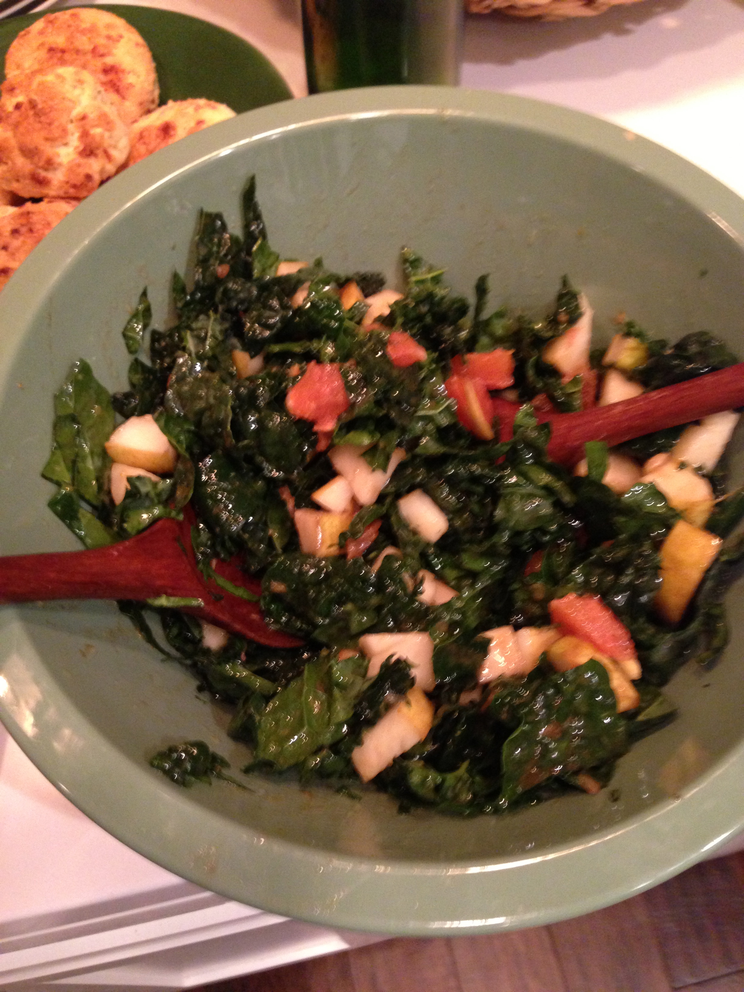 This was, admittedly, an accident. For many months now we have been making salads with kale – generally adding things like pomegranate and grapefruit (which are also wonderful) – but when those additives went out of season, we needed to think of something new. Enter the pear and orange combination – which we served with a very simple dijon and balsamic vinaigrette.