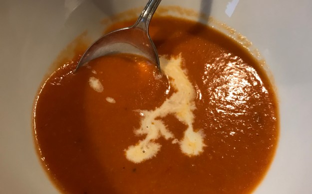 So we must confess, one of us has never been a tomato soup fan and the other is a bit of a fanatic. Finding something that brings in the former and appeals to the latter was something of a challenge. This recipe came directly from the NYTimes Cooking app with a couple of minor adjustments and is great on its own or with the perfect grilled cheese sandwich.