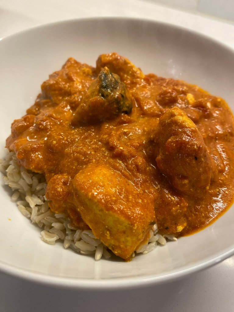 For this you’ll need: 2 lbs chicken (breast or thighs, depending on your preference), 1 cup + 1/2 cup plain yogurt, 1 Tbsp garam masala, 2 tsp turmeric, 2 tsp cumin, 1 tsp paprika, 1 tsp cayenne pepper, 1 1/2 tsp salt, 1 tsp ground pepper, 2 Tsp fresh lemon juice, 6 cloves garlic (peeled and grated), 2-3″ piece fresh ginger (peeled and grated), 1 yellow onion (chopped), 3 Tbsp tomato paste, 1 28 oz can whole tomatoes, 3/4 cup heavy cream, vegetable oil, salt and pepper for seasoning.
