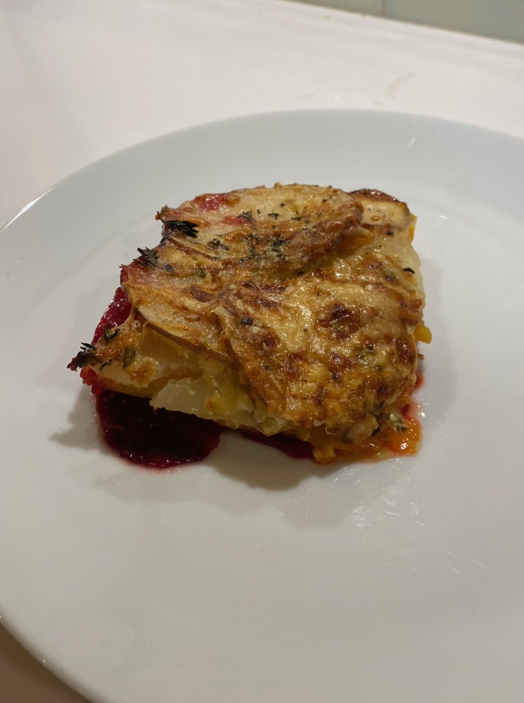 This one’s a keeper for sure. It takes some time but it is worth it. Here are all of the great fall root veggies in one place, topped with cheese and cream., What could be better? This was another installment of making new receipts for the holidays and this one comes from Alexa Weibel in NYTimes Cooking and didn’t disappoint. This is a root vegetable gratin that really delivers on taste and customer satisfaction.